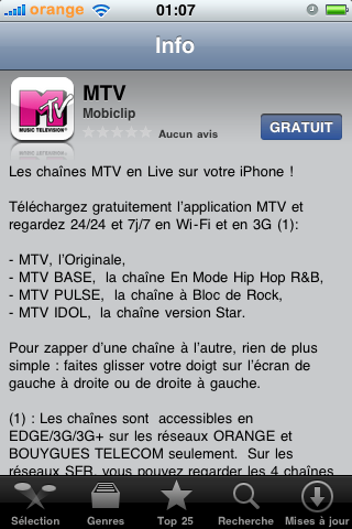Vous pourrez donc consulter MTV en Edge / 3G et wifi !