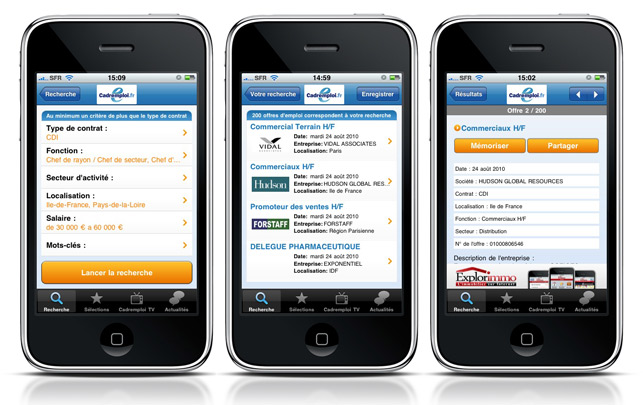 - La possibilité de postuler directement depuis votre iPod/iPhone/iPad quel que soit le lieu où vous vous trouvez